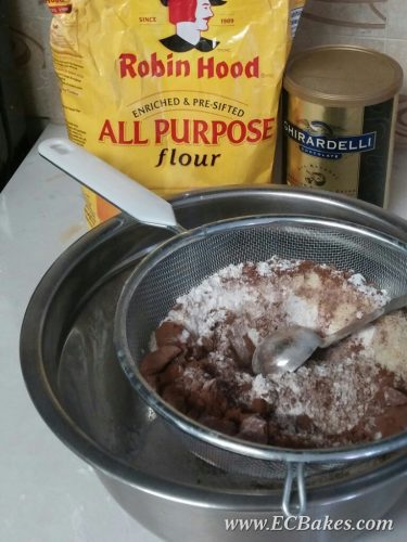Sift (A) in a mixing bowl. Mix well then make a well in the center.