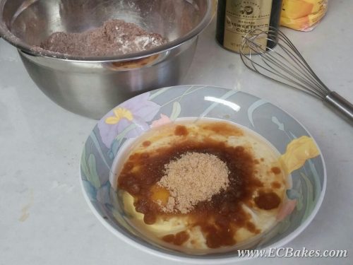 簡單快捷的鬆餅, 亮點是上面鬆脆的酥粒哦!這次EC將傳統鬆餅食譜來個大翻身, 減糖、用杏仁粉及無糖可可粉代替部份麵粉來減低碳水化合物及增加食用纖維含量、在鬆餅上洒上燕麥片而非較甜的朱古力粒…變身後的鬆餅更加有營養和健康!