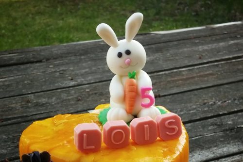 Place bunny on top of the cake when it’s dried.