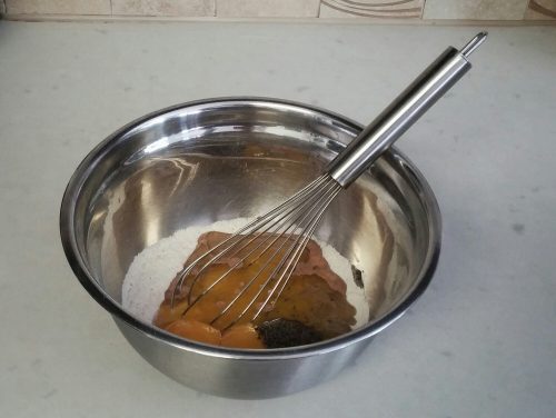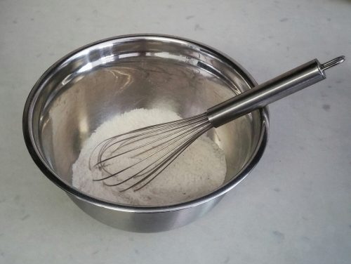 Separate the eggs and place the egg whites In a clean mixing bowl (I usually wipe the bowl and the wire beater with paper towel dampened with vinegar or lemon juice to remove traces of grease). Preheat oven to 325ºF/160ºC.