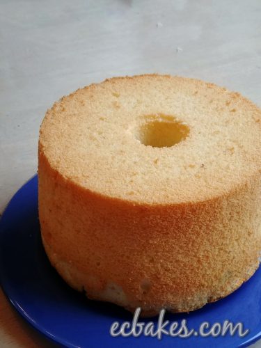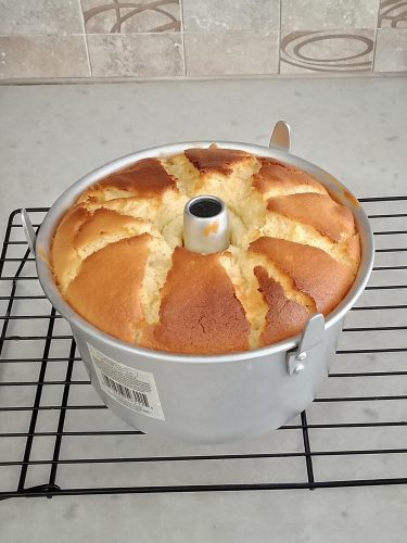Bake for 30 to 35 minutes or until a wooden skewer inserted in the center of cake comes out clean. Every oven is different so adjust baking time accordingly. Drop cake pan on the kitchen countertop at a distance upon removal from the oven. This will release any gas trapped in the cake cells and minimize shrinkage. Invert pan on a wire rack to cool completely before unmolding.