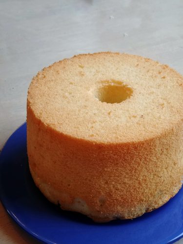 若要整齊的裂紋,可於入爐8至10分鐘待蛋糕表面結皮後取出蛋糕,用抹了油的薄刀在表面畫四至六條線,再放回爐中繼續焗至蛋糕熟透。**照片取自黑芝麻戚風蛋糕**