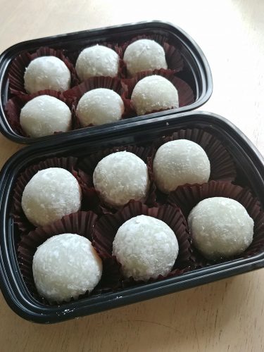 Mid autumn festival is already over but I still have several purple sweet potatoes and half a carton of coconut cream lett in my fridge after making my mooncakes (read about my blog posts, Coconut Purple Sweet Potato Snow Skin Mooncakes and Crispy Coconut Sweet Potato Mooncakes). I turned the leftover ingredients into mochi in the morning while my kids were at school. The kids enjoyed snacking on these smooth and elastic mochi after school and my younger son who loves to eat even requested to bring one to school for lunch the next day. Fortunately, mochi made with Japanese sweet rice flour could stay soft for two days and therefore wouldn’t deteriorate and turn into dry and stiff balls overnight.