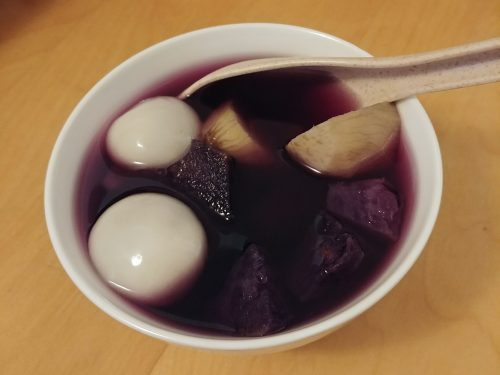 This one was made with Korean sweet potato and Okinawan sweet potato. I added tang yuan (glutinous rice balls) after making the soup with Instant Pot.
