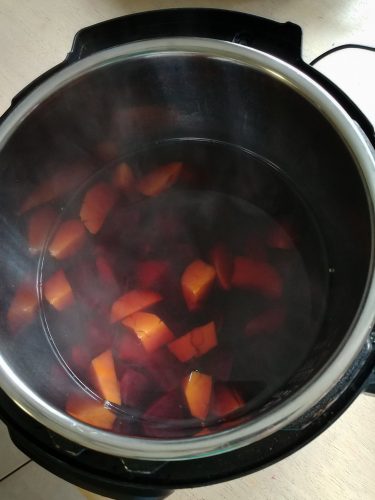 Place sweet potato cubes, ginger slices and the slab sugar into the Instant Pot. Add water to cover the ingredients (I add hot water to speed up the heating process). Cover the pot, turn venting knob to sealing position and select “manual” function. Set to low pressure and pressure cook for 5 minutes. When timer beeps, wait 10 minutes before releasing pressure. Carefully remove the lid and serve. The soup dessert can be served hot or chilled.
