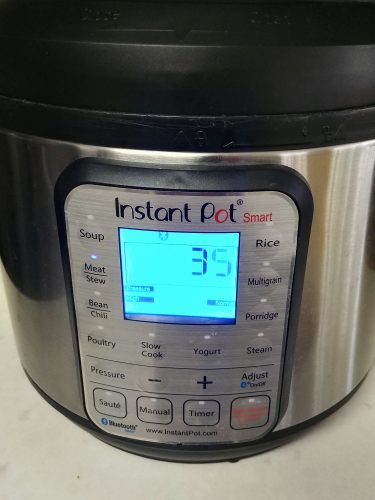 把瀝乾的紅豆、陳皮和兩公升水(想快一點可用熱水)放入Instant Pot內鍋,關上鍋蓋把排氣閥調整到密封“sealing”位置,按“manual”或”pressure cook” 鍵選擇高壓煮35至40分鐘,煮好後按“cancel”等待自然放壓(約15至20分鐘),小心打開蓋子,加入片糖後按“sauté”,煮3至5分鐘至糖溶便可按”cancel”停止操作。