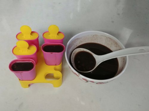 I turned the leftover red bean soup into popsicles. I readjusted sweetness by adding more honey as freezing will minimize sweetness.