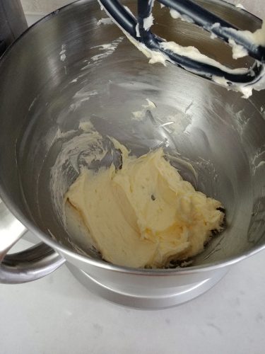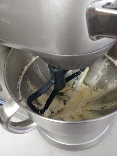 牛油放入攪拌盆中(牛油必須放至非常非常非常軟身),以電動打蛋器或座枱式攪拌器(使用攪拌槳配件)低速把牛油打滑,加入糖霜低速拌勻至軟滑,無須打進空氣至牛油發白及蓬鬆,否則入爐後花紋會因過度膨脹而消失。