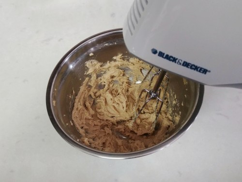 Beat in the egg until fully incorporated. Add evaporated milk and beat until blended. Scrape down the sides of the bowl with a spatula.
