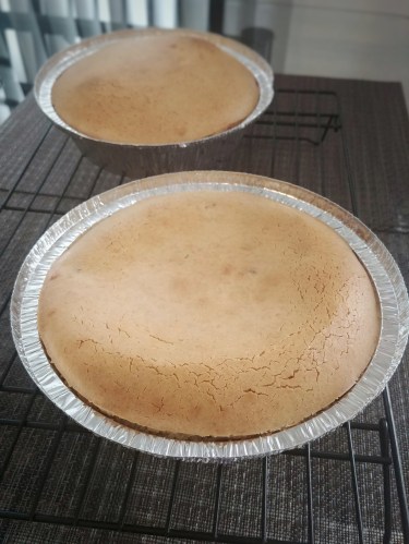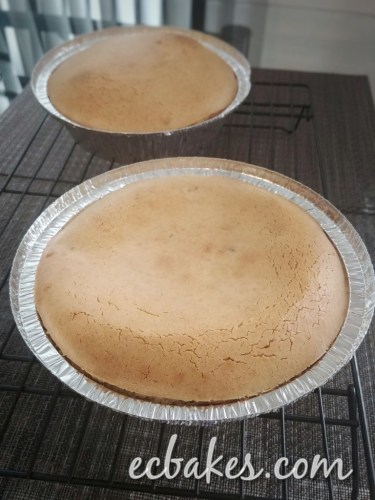 放入焗爐焗至表面微微金黃和竹籤插入取出不沾粉漿(EC家中焗爐需多焗45分鐘),各家焗爐有别請自行調整時間,若要表面顏色更金黃可在末段大約八至十分鐘時將爐溫提高至350ºF/180ºC。