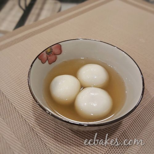 Bring another pot of water to a boil. Place rice balls in boiling water and cook with medium-low power with occasional stirring until they float to the surface and expand. Switch off then cover the pot and let rest for 5 minutes. Drain and transfer the rice balls to the sweet soup before serving.
