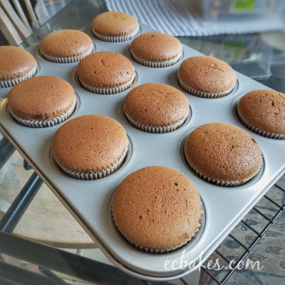 Remove from the oven and bang the pan against the countertop several times to release hot air. Cool in pan for 5 minutes then transfer cupcakes to a wire rack to cool completely. Store cupcakes in an airtight food container and let rest for a couple of hours until the surface of the cupcakes becomes soft. If possible, serve cupcakes the next day for better flavour.