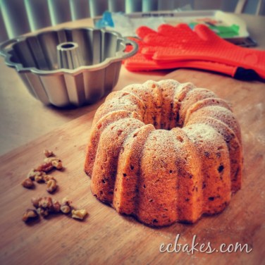 Preheat the oven to 325ºF/160ºC. Butter and flour the bundt pan then tap off excess flour (or spray with a baking spray).
