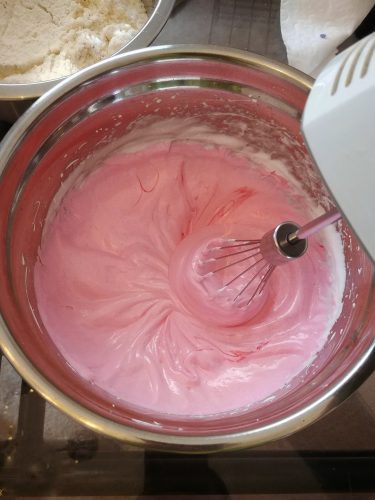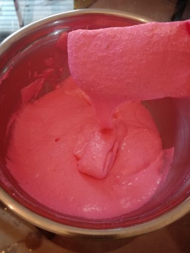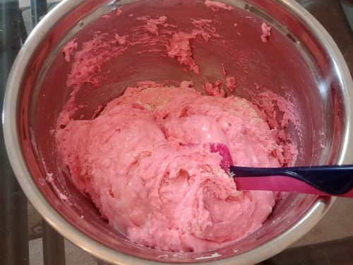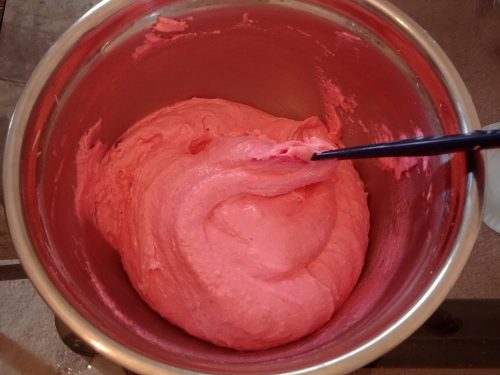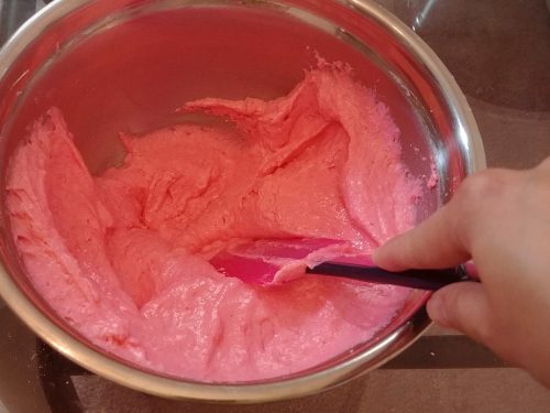 I used Americolor electric pink for the deeper color batch and the lighter color ones came from a mixture of deep pink and fuchsia.