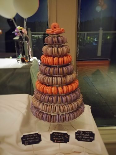 Below is the macaron tower I made for my friend. The other two flavors were Earl Grey Orange Macarons and Lavender Osmanthus Macarons.