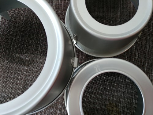 日式戚風模(右下角)連模底也有捲邊設計,邊緣十分平滑,北美的中空模完全給比下去了!