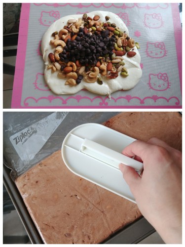 Here is another batch made with mixed nuts and chocolate chips that my son liked. I was hoping to create a swirl effect but the chocolate chips almost all got blended in… sigh. For that effect I think I might have to make a plain and then a chocolate nougat dough and then swirl the two together. I will try that again later.
