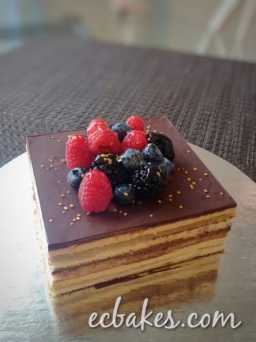 This is what I made for my dad’s birthday in December (yes I know it’s already end of March now). There is actually nothing new about this cake but a combination of different things I’ve made before. Apart from a cake layer, the almond sponge cake could also be used as a cake wrapper. For detailed recipes, please read about my blog posts Joconde Imprime with Salted Caramel, Coffee and Chocolate Entremet, Joconde Imprime with Dark Chocolate Mousse and Strawberry Yogurt Cheesecake Entremet, Joconde Imprime with Coconut-Mango and Purple Yam Entremet, Biscuit Joconde Imprime with Strawberry White Chocolate Mousse and Raspberry Gelée Entremet. My foolproof way of making Swiss meringue buttercream with fresh egg whites is here.