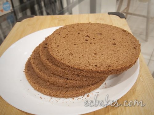This cake tastes delicious when served as is, or you could cut it into layers and use that as a base cake for any mousse cake or whipped cream cake. Because it is made with liquid oil, the cake won’t harden when chilled. If you are looking for firmer sponge cake that is able to bear weight (like when you are making a fondant cake), please visit my other blog posts, Basic Sponge Cake (2) or Chocolate Genoise.